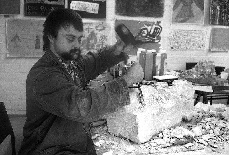 Lambert Willing im Atelier der Gruppe im `Haus Kilian´, Schermbeck, 1995