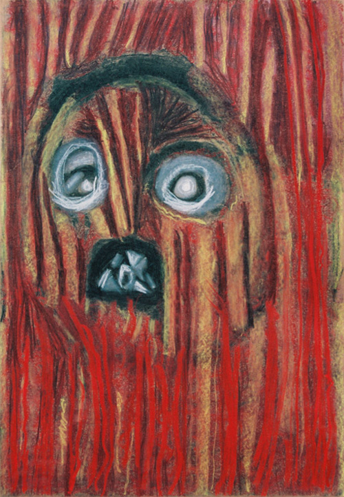 Christel Bischoff, ´Angst I´, Kohle und Pastellkreide auf Papier, 70cm x 100cm, 2002