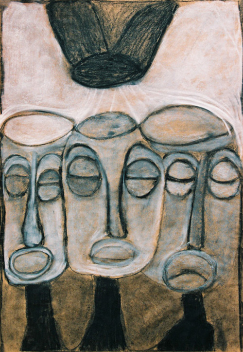 Christel Bischoff, `Die drei Brüder, die den Holocaust nicht überlebt haben´, aus dem Zyklus Euthanasie im Dritten Reich, Kohle und Pastellkreide auf Papier, 70cm x 100cm, 1999