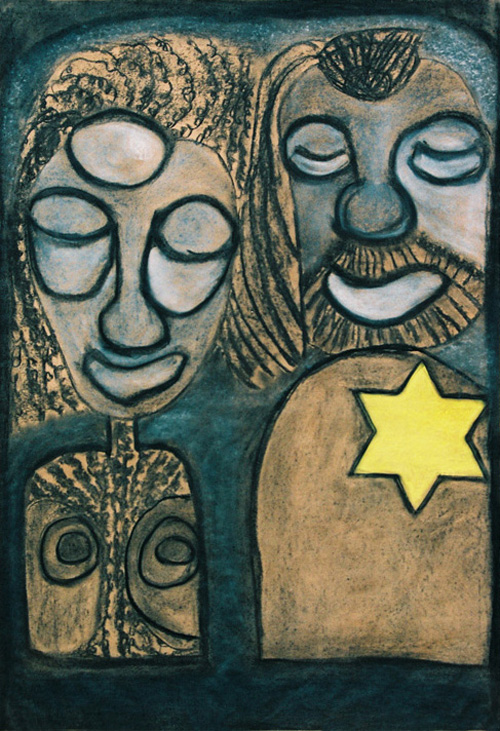 Christel Bischoff, `Der Jude und der Ausländer´, aus dem Zyklus Euthanasie im Dritten Reich, Kohle und Pastellkreide auf Papier, 70cm x 100cm, 1999