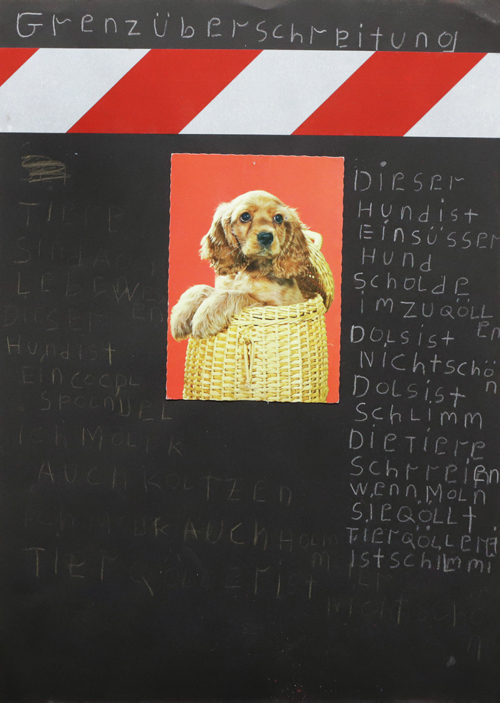 Stefan Neumeier, `Arme Hunde I´, Foto, Postkarte Pastellkreide und Silberstift auf Pappe, 35 x 50 cm, 2019