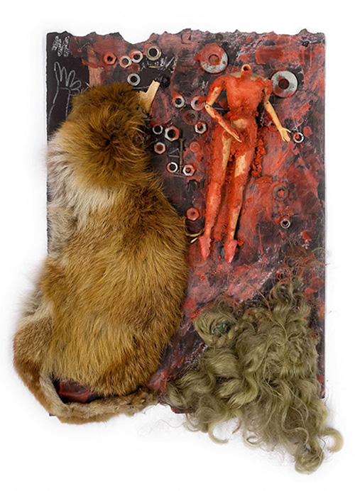 Ulrich Wecking, `Frau und Fuchs´, Assemblage, 40 x 60 x 13 cm, 2001