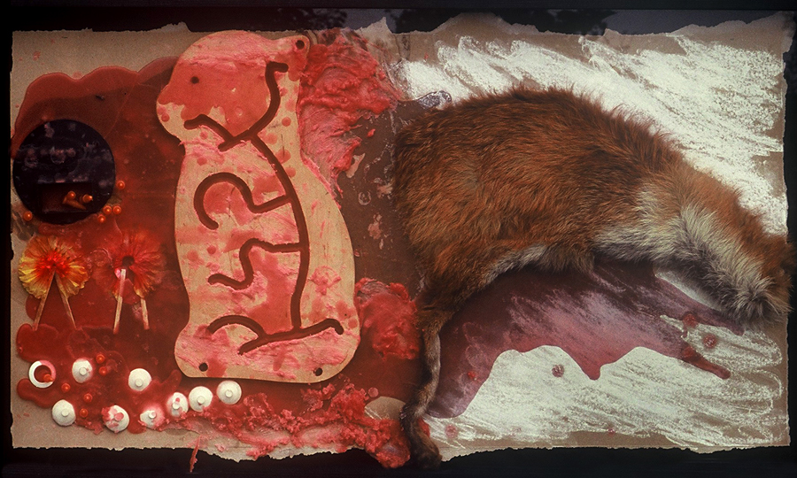 Ulrich Wecking, `Der Fuchs ist tot´, Assemblage, 40 x 100 x 8 cm, 2003